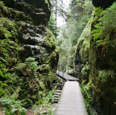 30 km: das schönste Dorf Sachsens, Hinterhermsdorf mit der „Oberen Schleuse“, wo in der wildromantischen Natur Kahnfahrten möglich sind