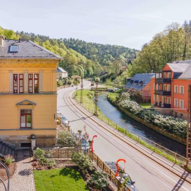 Über Bad Schandau nach ca. 36 km erreichen Sie Berggießhübel mit seinem Marie-Louise-Stollen, einem Besucherbergwerk.